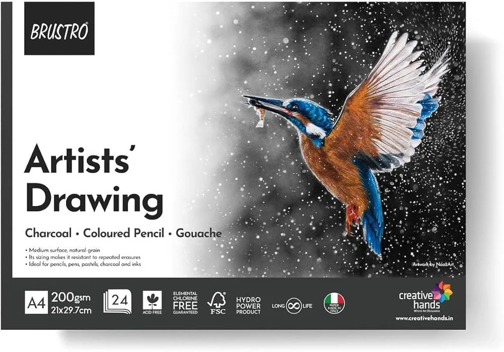 BRUSTRO Artist Drawing 200 GSM, A4, 24 Sheets is a premium-quality drawing pad designed for artists, students, and hobbyists who seek superior performance in their artwork. Made with 200 GSM acid-free paper, it provides excellent thickness and durability, making it ideal for pencil, charcoal, ink, pastels, graphite, and light watercolor washes.