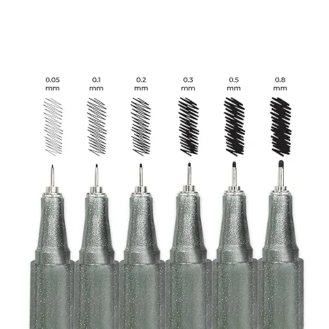 - Six nib sizes – 0.05, 0.1, 0.2, 0.3, 0.5 and 0.8mm for precise detailing and bold strokes, also includes a set of six A6 postcards for personalized, creative DIY projects
