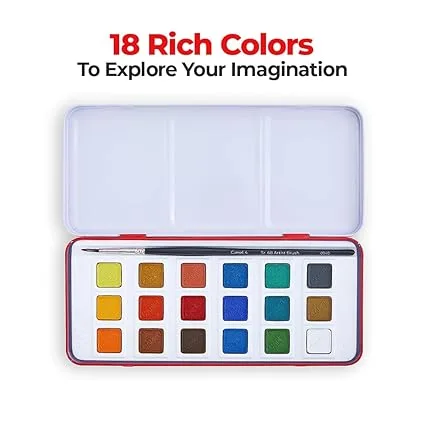 Camel Artist Water Colour Cakes 18 Assorted Shades | Rich Pigments & Vibrant Colors | Ideal for Artists & Hobbyists