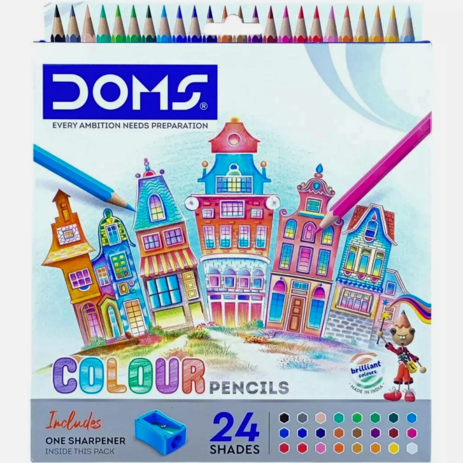 DOMS Color Pencils 24 Shades | Includes One Sharpener Inside | Pack Of 1, Multicolor