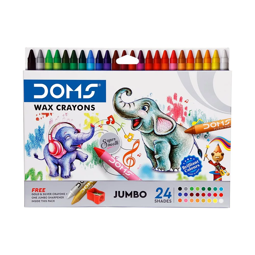 DOMS Super Soft Jumbo Wax Crayons 24 Shades Worth Free Gold & Silver Crayons Inside This Pack