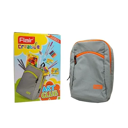 Flair Art Club Kit Package Includes – 1 N Drawing Book, 2 N Wooden Pencil, 1 N Sketch Pen Pack (12 Shades), 1 N Wax crayons (12 Shades), 1 N Oil Pastels (12 Shades), 1 N Plastic Scale 15 cm, 1 N Sharpener, 1 N Eraser, 1 N Mini Color Pencil Pack (12 Shades), 3 N Glitter Gel Pen, 3 N Hotline Fine liner Pen, 1 N Bag. It Is A Well Curated Kit Which Includes A Wide Range Of Products Required By Your Creative Child. The Contents Of This Set Are Non-Toxic & Safe For Children.Ā
