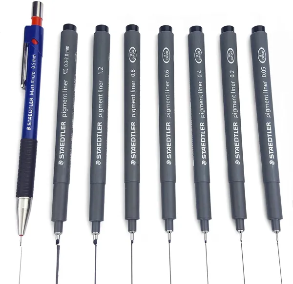 Staedtler 7 Pigment Liner Fineliner, Sketching And Drawing Pen Set (Pack of 7) Free 1 Mars Micro Pencil